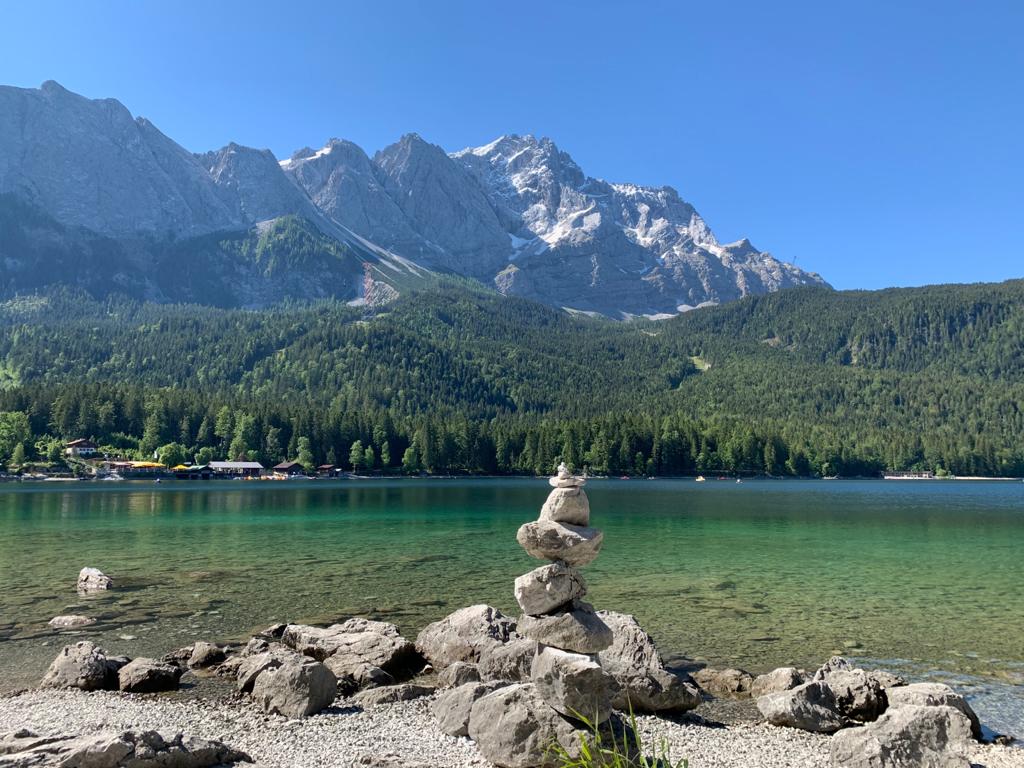 Cairns au Eibsee devant le Zugspitze © Evelyne van der Ploeg
